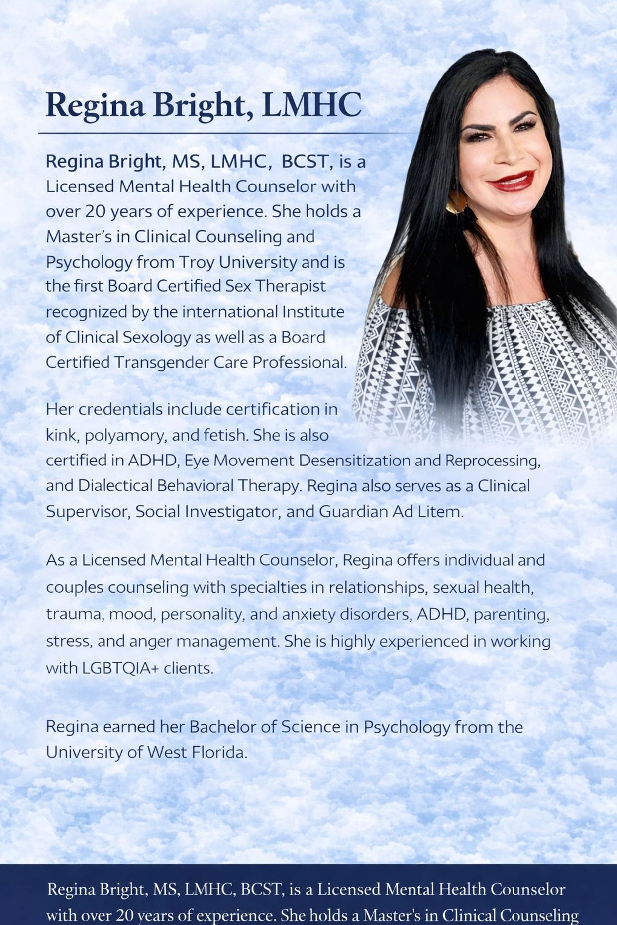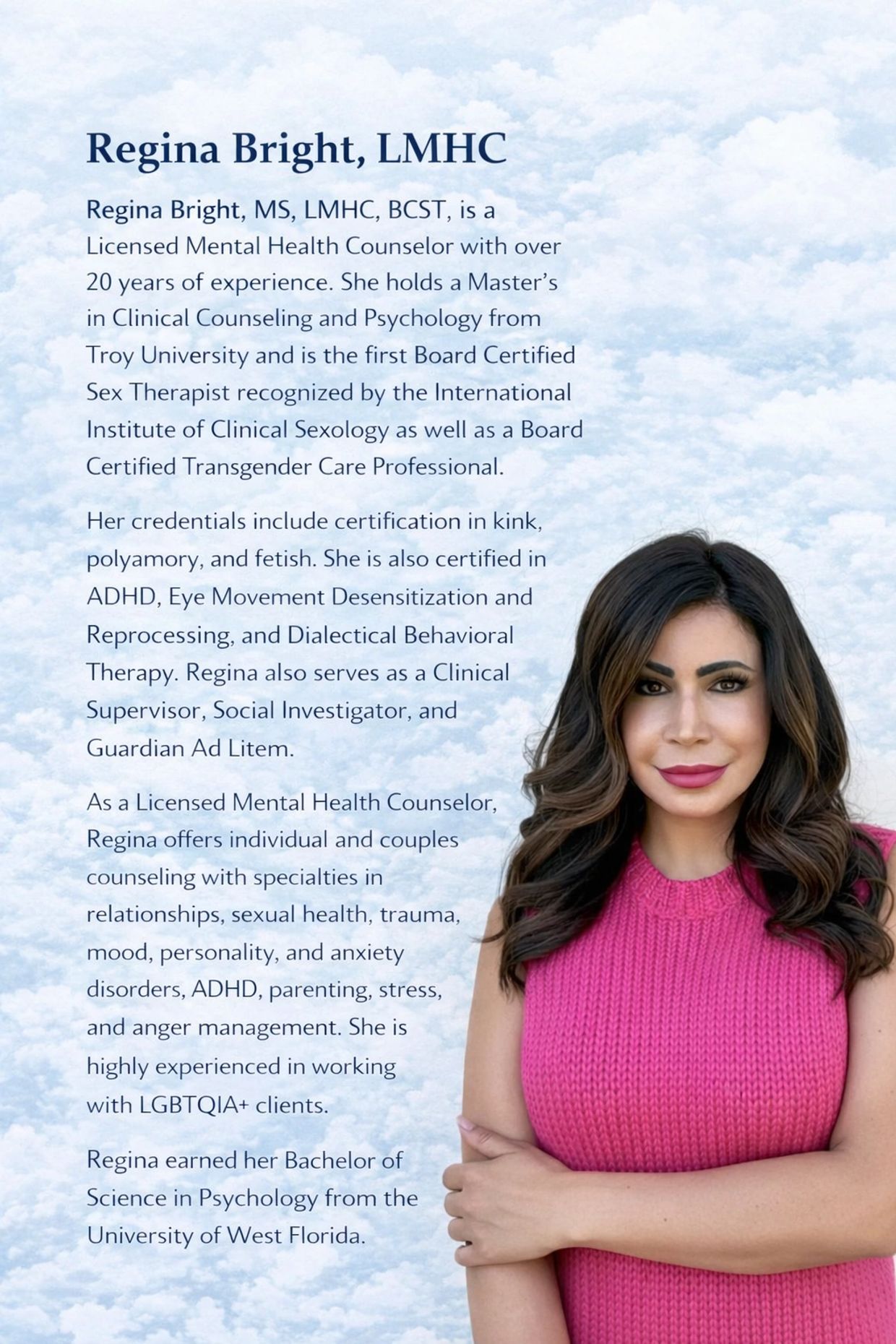 Call or Text: (850) 226-6430 Email: sextherapistregina@gmail.com Fax: (850) 254-1986